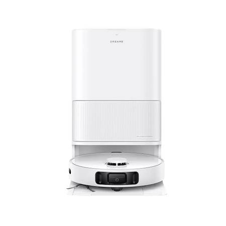 Już na pierwszy rzut oka Dreame D20 Ultra robi wrażenie eleganckiego, minimalistycznego urządzenia. Biały kolor obudowy sprawia, że świetnie wpisuje się w nowoczesne wnętrza, a kompaktowa konstrukcja umożliwia mu wjazd pod większość mebli. Do zestawu dołączona jest stacja PowerDock™, która nie tylko pełni funkcję ładowarki, ale też odpowiada za konserwację robota – o niej za chwilę.