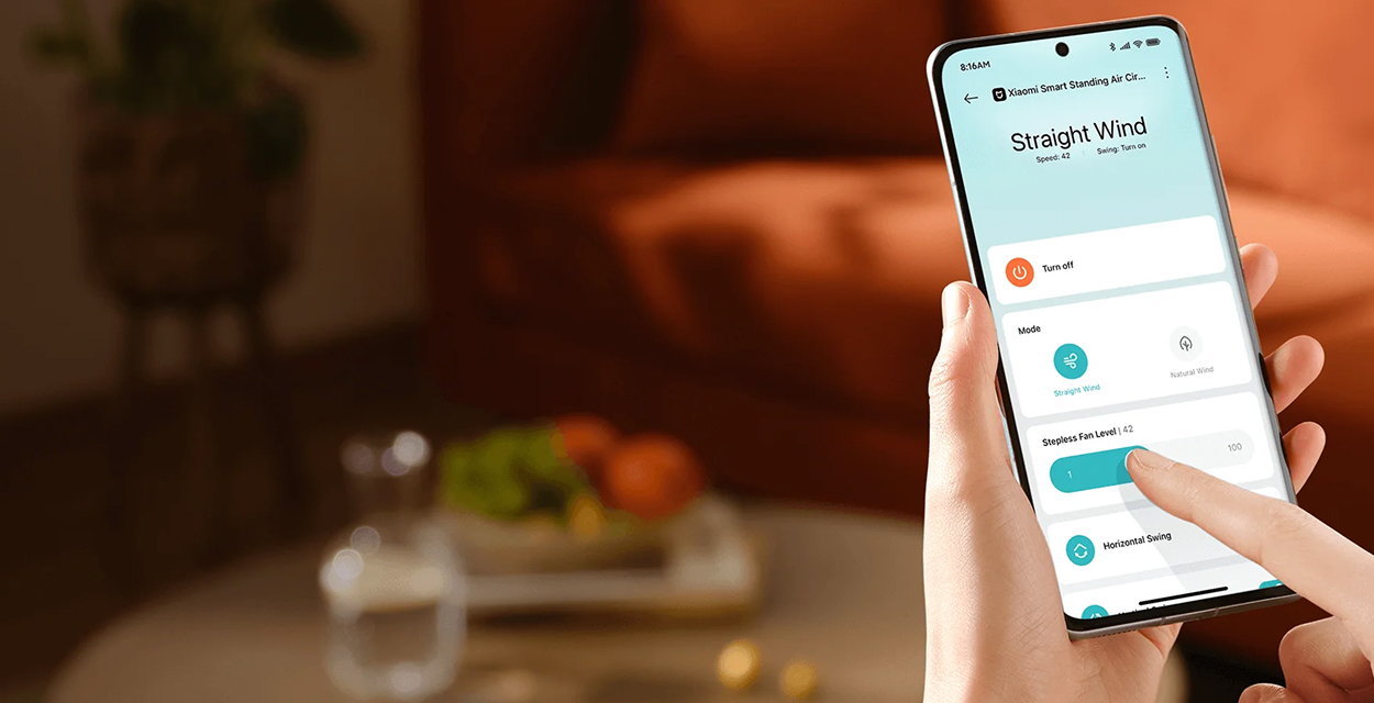 Płynnie działający silnik inwerterowy DC umożliwia precyzyjne dostosowanie intensywności nawiewu do Twoich preferencji. W trybie bezpośrednim możesz wybierać spośród aż 100 poziomów prędkości, a całością sterujesz wygodnie z poziomu aplikacji Xiaomi Home.