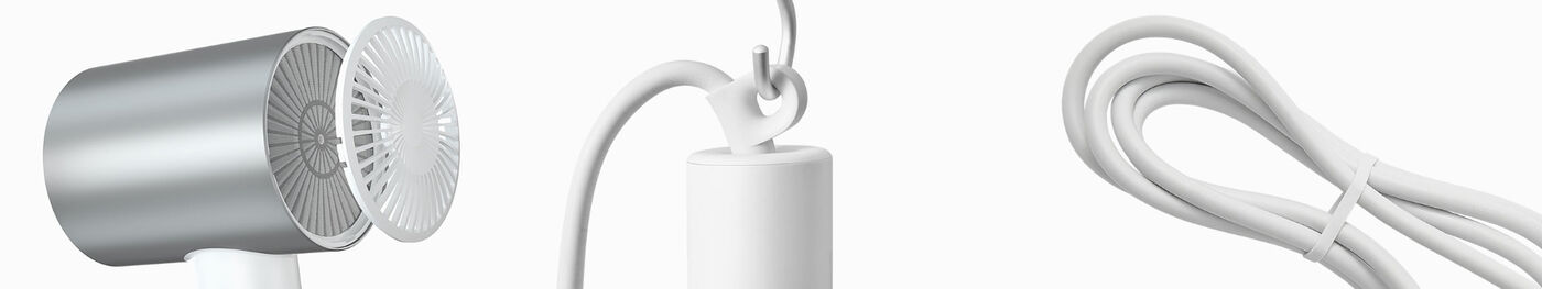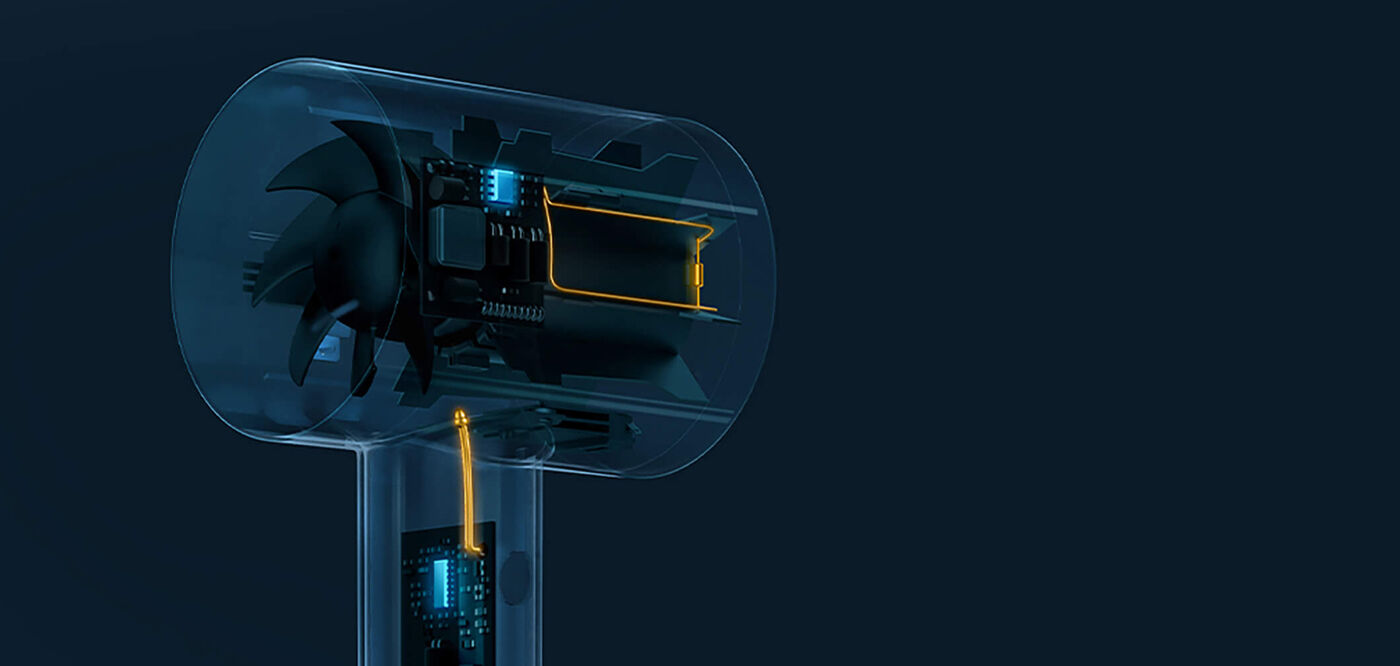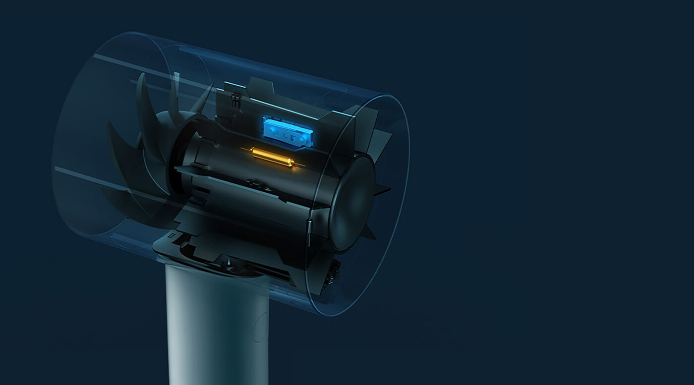 Zainspirowana zasadą silników lotniczych, Xiaomi Water Ionic Hair Dryer H500 jest wyposażona w szybki silnik prądu stałego o prędkości 20 000 obr./min oraz siedem łopatek turbiny w kształcie skrzydeł, które generują przepływ powietrza poprzez wyciskanie powietrza ze stożkowego kanału sprężonego powietrza . Najwyższa prędkość przepływu powietrza to 20m/s, dzięki czemu silny przepływ powietrza dociera do nasady i szybko suszy włosy bez żadnych uszkodzeń.
