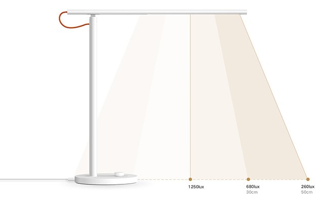 Przy założeniu, że ogólny rozmiar obudowy pozostaje niezmieniony, strumień świetlny lampki biurkowej Mi LED Desk Lamp 1S jest o 73% większy niż w przypadku pierwszej generacji i wynosi do 520lm. Wartość natężenia oświetlenia została zwiększona do 1250 lumenów, czyli o 66% więcej niż w przypadku pierwszej generacji, osiągając standard oświetlenia krajowej normy lampy biurkowej do czytania i pisania na poziomie A. [3]