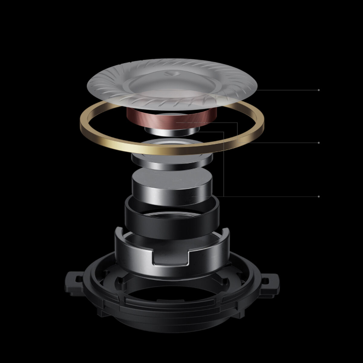 Membrana o wysokiej sztywności redukuje drgania przy wysokich częstotliwościach. Wysokie tony są zróżnicowane, wyraźne i czyste.