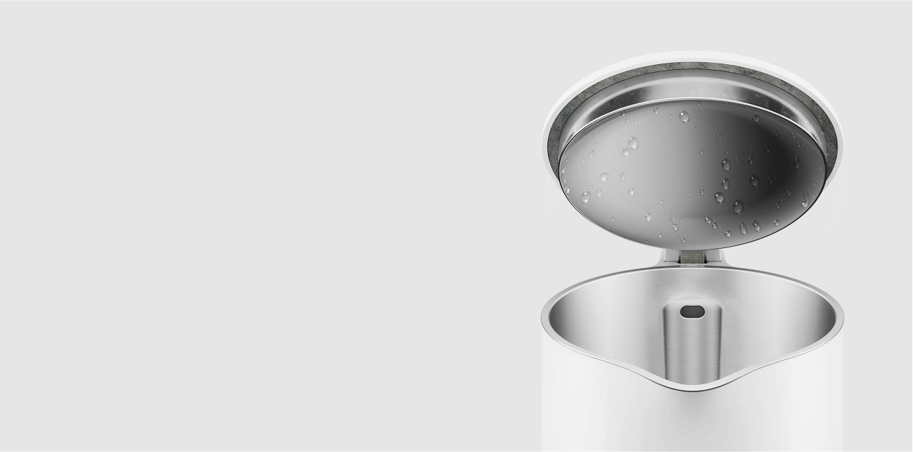 Gdy pokrywa jest otwarta, kropelki skroplonej wody utworzone przez parę stykającą się z pokrywą opadają z powrotem do czajnika, zapobiegając rozpryskiwaniu się gorącej wody po otwarciu pokrywy.