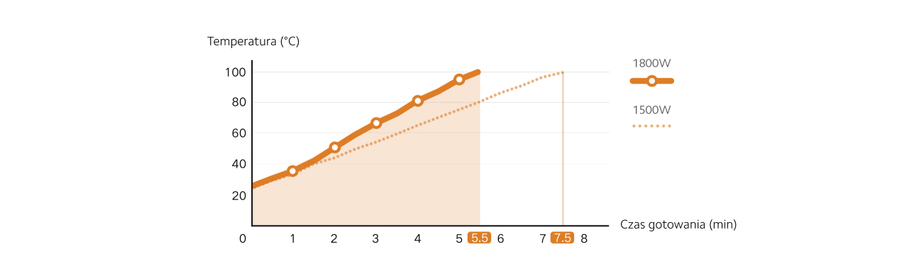 Wysoka moc wyjściowa 1800 W, oszczędność 2 minut przy każdym gotowaniu