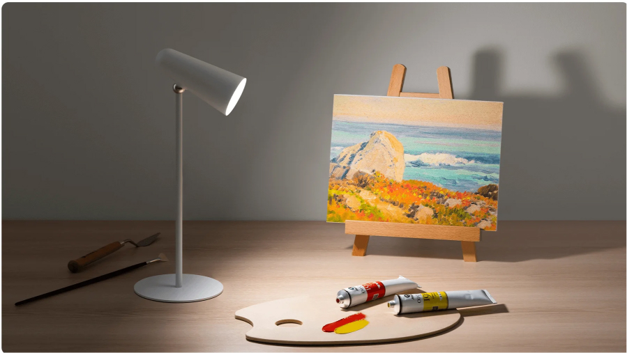 - Kompaktowa, przenośna lampa z funkcją latarki, lampki biurkowej i zaciskowej. Wyposażona w baterię 2000 mAh, zapewnia do 40 godzin światła. Wysoki współczynnik CRI Ra90 gwarantuje naturalne kolory, a 4 tryby oświetlenia dostosowują się do różnych potrzeb.