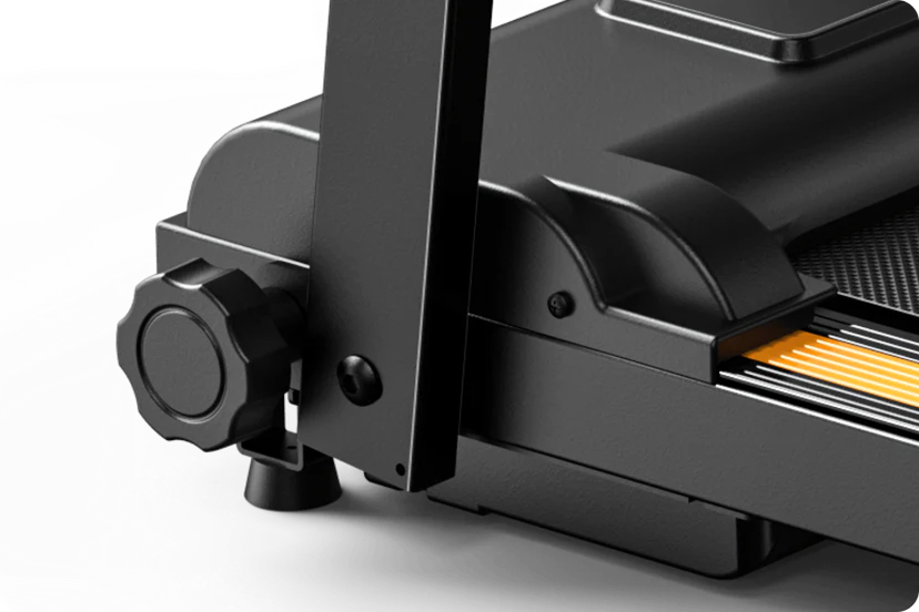 Dzięki obrotowemu pokrętłu możesz z łatwością złożyć i rozłożyć ramę bieżni bez potrzeby używania dodatkowych narzędzi.