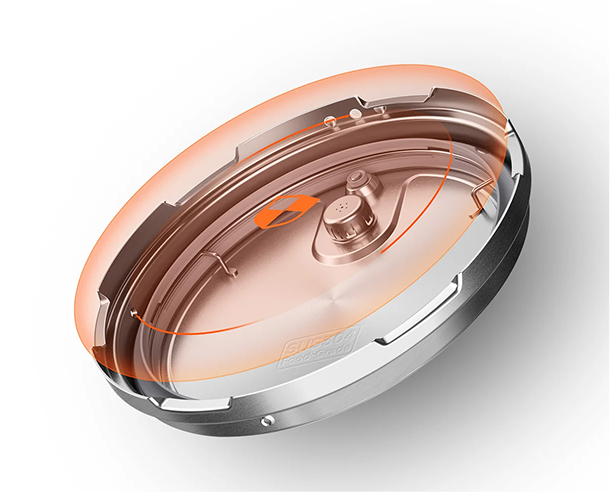 Górna pokrywa wykonana z wysokiej jakości stali nierdzewnej 304, bezpiecznej dla żywności, waży około 1,5 kg. Odporna na wysokie ciśnienie, trwała i niezawodna, zapewnia bezpieczeństwo oraz długą żywotność urządzenia.