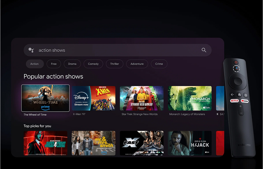 Twój projektor jest bardziej pomocny niż kiedykolwiek! Poproś Asystenta Google o wyszukiwanie filmów, uruchamianie aplikacji, odtwarzanie muzyki i sterowanie urządzeniami – wszystko bez użycia rąk. Wystarczy nacisnąć przycisk Asystenta Google na pilocie, aby rozpocząć.
