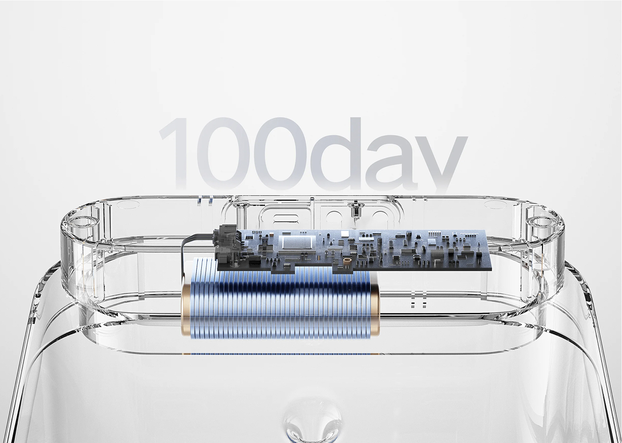* Czas pracy baterii został przetestowany przez producenta przy urządzeniu naładowanym do pełna i fontannie dozującej wodę 24 razy dziennie przy połączeniu z Internetem. Liczba dozowań wody dziennie może się zmieniać. Należy zapoznać się z rzeczywistymi scenariuszami użytkowania.