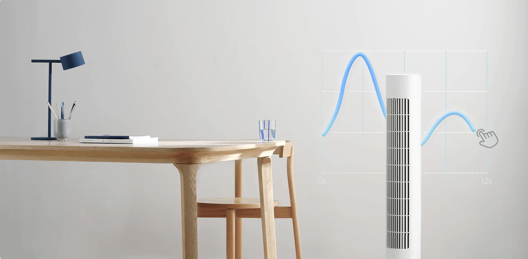 Smukła wieżowa konstrukcja z wyjątkowo długim wylotem powietrza (0,6 m) zapewnia przyjemną, naturalną bryzę. Wentylacja w zakresie 150° przyspiesza cyrkulację powietrza i szybciej chłodzi pomieszczenie. W aplikacji Xiaomi Home możesz dostosować kąt nawiewu do swoich potrzeb.
