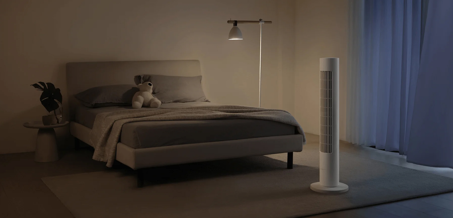 Xiaomi Smart Tower Fan 2 wykorzystuje silnik inwerterowy DC, który zapewnia delikatny, rozproszony nawiew - bez silnych podmuchów. W trybie bezpośrednim na poziomie 1 wentylator pracuje wyjątkowo cicho, generując jedynie 28,7 dB(A), co sprzyja spokojnemu i komfortowemu snu.