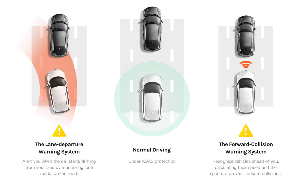 Kamera 70mai A500S została wyposażona w system ADAS, który ostrzega przed zjechaniem z pasa czy ryzykownym zbliżeniem do innego auta. Rejestruje niebezpieczne sytuacje na drodze, a nagrania mogą posłużyć jako dowód. Nowoczesny sensor Sony i technologia WDR zapewniają wyraźny obraz w każdych warunkach