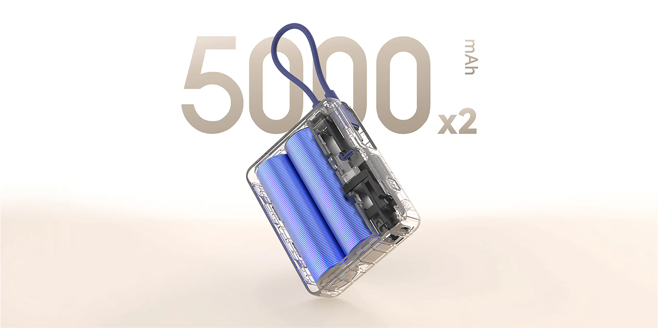 Nie musisz się martwić o rozładowanie. Power bank zawiera dwa wysokiej jakości ogniwa po 5000 mAh każde, łącznie 10 000 mAh*. Inteligentny układ automatycznie dostosowuje prąd wyjściowy do różnych urządzeń, gwarantując efektywne i bezpieczne ładowanie.