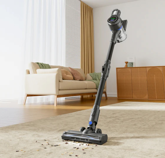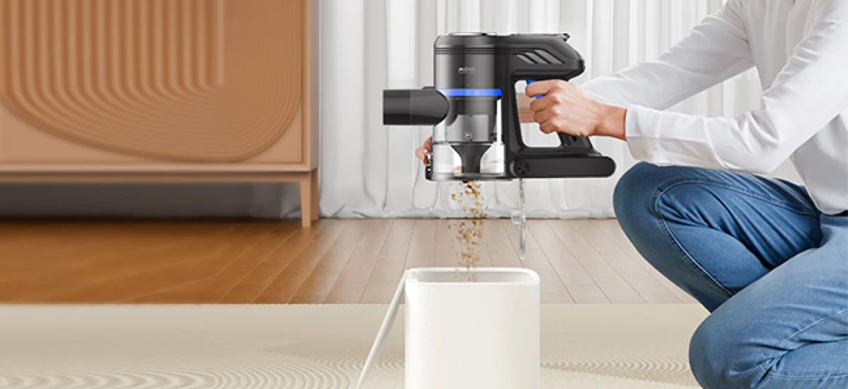 - MOVA J30 to bezprzewodowy odkurzacz pionowy z mocnym silnikiem 450 W i czasem pracy do 60 minut. Składany uchwyt ułatwia sprzątanie pod meblami, a ekran LED i podświetlana szczotka zwiększają komfort użytkowania.