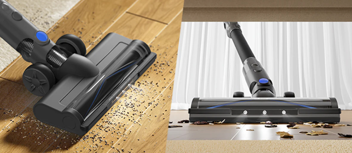 Szczotka uniwersalna została zaprojektowana tak, by skutecznie czyścić dywany i twarde podłogi, a wbudowane diody LED oświetlają ciemne zakamarki, dzięki czemu nie umknie Ci żaden kurz.