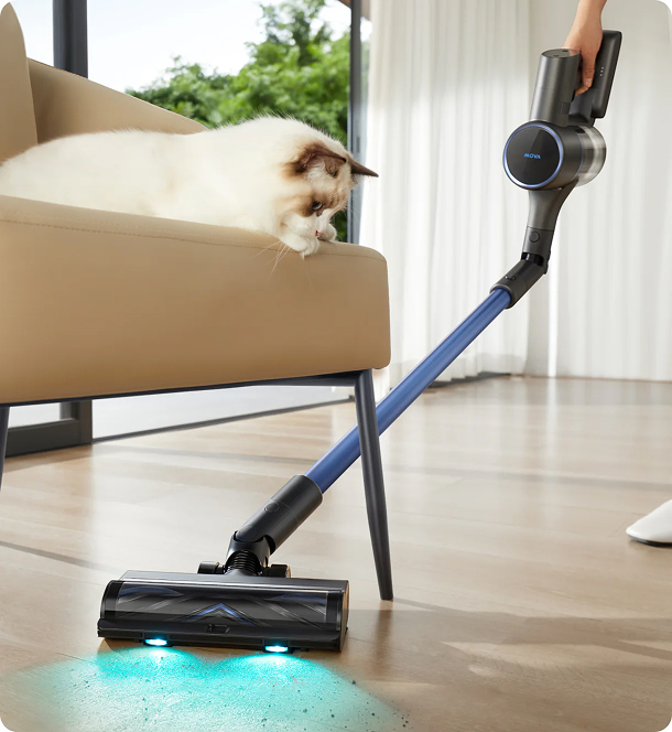 - MOVA S4 Detect to lekki, bezprzewodowy odkurzacz z technologią OptiInsight™, oświetleniem LED i szczotką zapobiegającą plątaniu włosów. Posiada ekran LED, elastyczny adapter i łatwo opróżniany pojemnik. Oferuje do 90 minut pracy w trybie Eco.