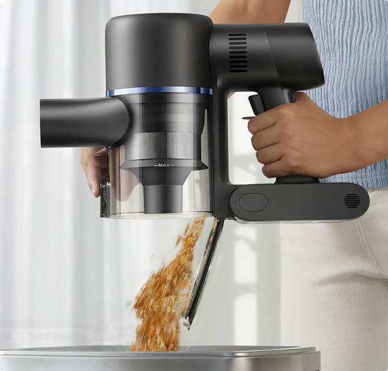 Jedno naciśnięcie przycisku wystarczy, by szybko i wygodnie opróżnić pojemnik z kurzu i brudu.