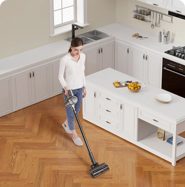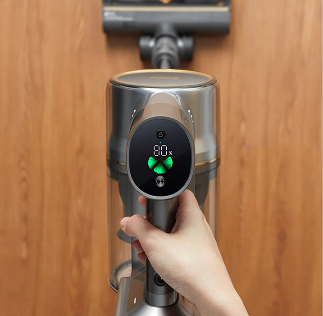 Automatycznie dostosowuje moc ssania do poziomu kurzu, zapewniając dokładne i efektywne sprzątanie. Wyświetlacz LED pokazuje aktualny status oraz sugeruje zmianę trybu pracy, by ułatwić obsługę.