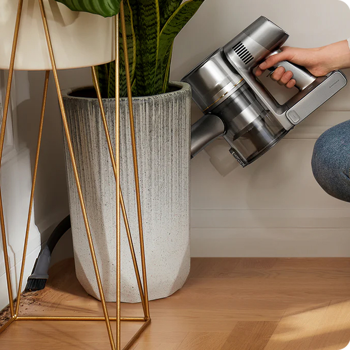 Ciesz się nawet 90 minutami bezprzewodowego sprzątania dzięki mocnemu, niezmiennie skutecznemu ssaniu z akumulatora 8 × 2900 mAh.