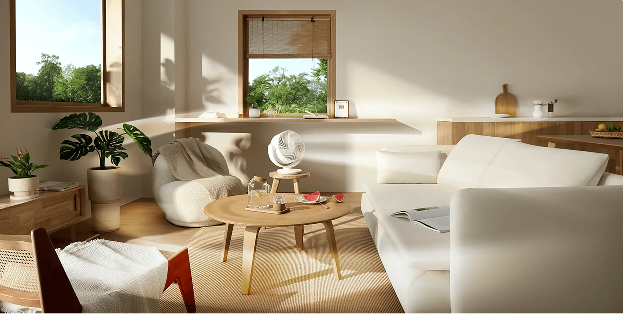 Dzięki silnikowi inwerterowemu DC wentylator zapewnia stabilny nawiew, zużywając przy najniższym poziomie prędkości i bez oscylacji zaledwie 1,75 W. To pozwala cieszyć się chłodem przez całe lato przy minimalnym zużyciu energii.