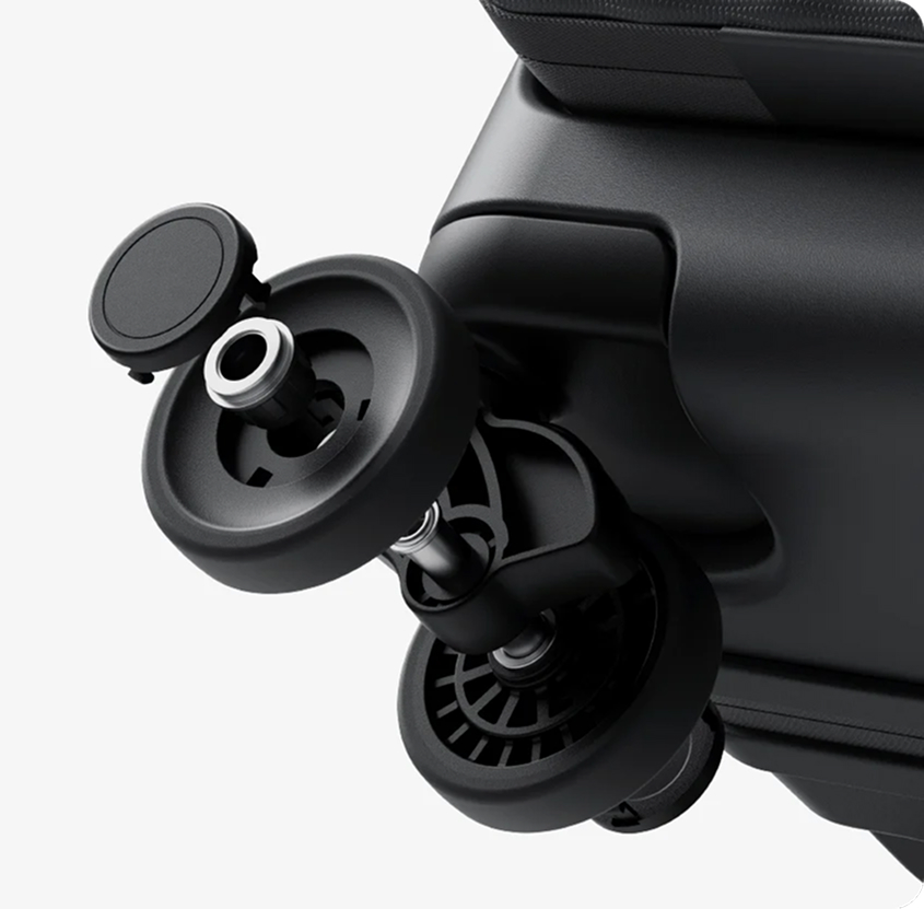 Większe kółka wyposażone w ulepszone tuleje gwarantują płynny obrót i łatwe manewrowanie walizką. Powłoka z elastycznej gumy TPE skutecznie tłumi wibracje i hałas, a także zwiększa trwałość podczas długotrwałego użytkowania.