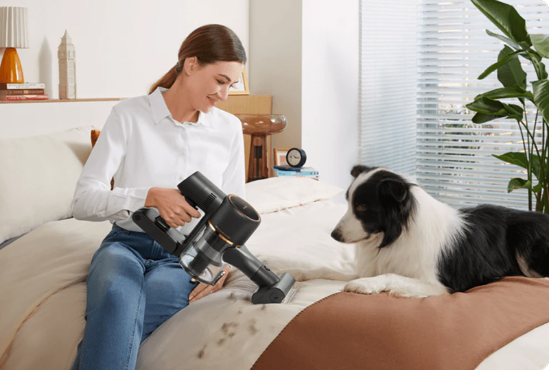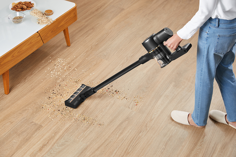 R10 Pro jest wyposażony w nowoczesny, bezszczotkowy silnik o prędkości 120 000 RPM, który gwarantuje stałą, wysoką moc ssania na poziomie 150AW. Dzięki temu skutecznie usuwa nawet głęboko osadzony kurz, włosy i większe zanieczyszczenia z dywanów, paneli i twardych podłóg.