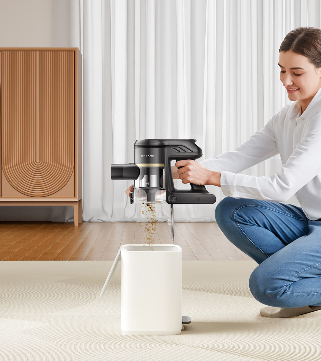 Wyświetlacz LED pokazuje tryb pracy oraz stan urządzenia, dając Ci pełną kontrolę podczas sprzątania. Zbiornik o pojemności 0,5 l opróżnisz jednym przyciskiem, a elementy takie jak filtr czy wałek szczotki można łatwo umyć pod bieżącą wodą, co pomaga utrzymać odkurzacz w doskonałej kondycji na długie lata.