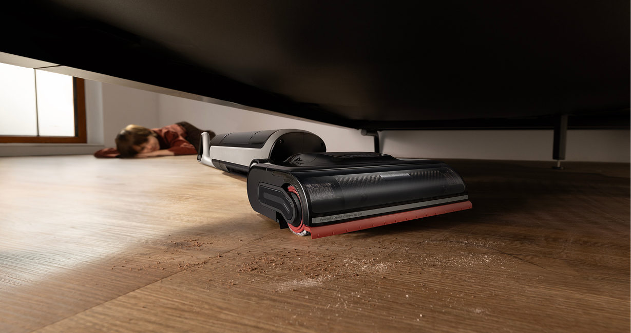 Po ustawieniu pod kątem 180° możesz obsługiwać koło GlideWheel™ odkurzacza za pośrednictwem aplikacji, sprzątając trudno dostępne miejsca z użyciem mocy ssania sięgającej 22 000 Pa*. Wytrzymały skrobak TangleCut™ zapewnia sprzątanie bez splątań*, skutecznie usuwając włosy i brud.