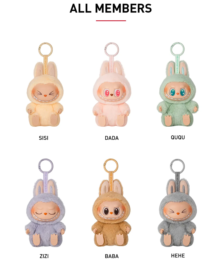 Seria Labubu Have A Seat obejmuje sześć podstawowych figurek: Sisi, Hehe, Baba, Zizi, Ququ i Dada. Każda z nich ma równe szanse na trafienie, co sprawia, że kompletowanie kolekcji jest pełne emocji i satysfakcji.