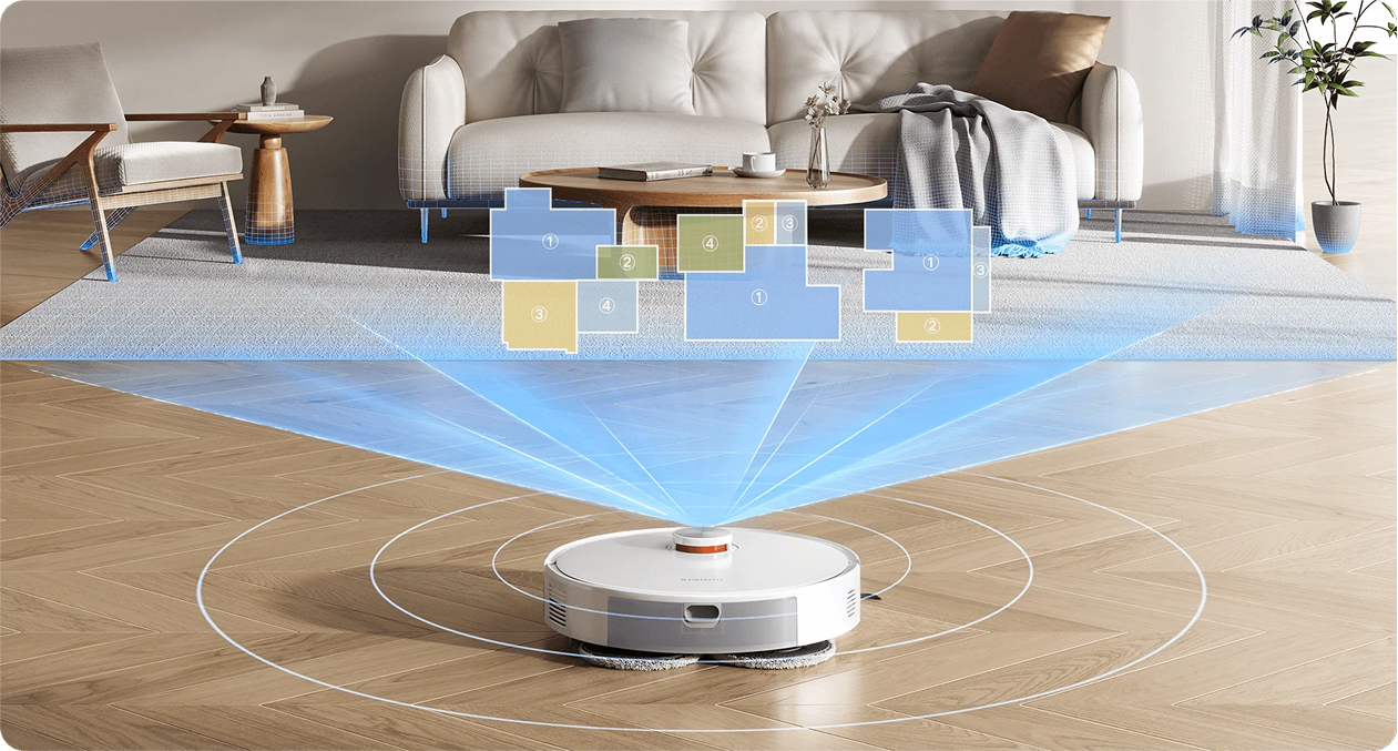 Zaawansowany system LDS skanuje pomieszczenia w pełnym zakresie 360°, tworząc precyzyjną mapę domu. Robot zapamiętuje układ, co pozwala na płynne i szybkie sprzątanie bez zbędnych powtórzeń.
