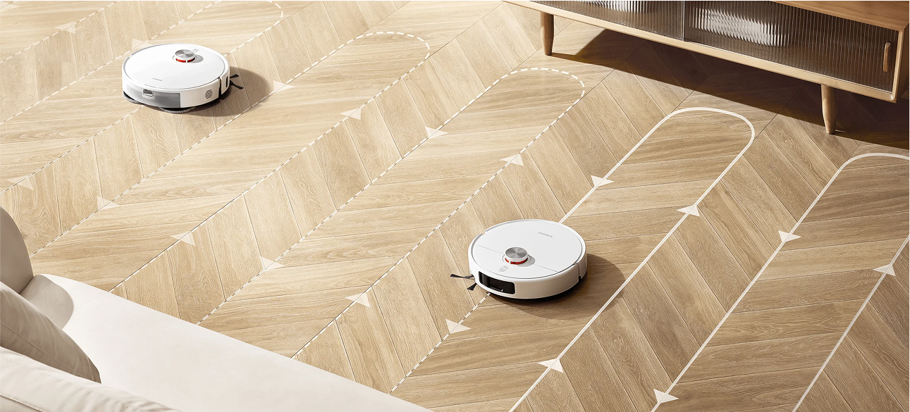 Robot sprząta według schematu w kształcie litery „S”, co zapewnia pełne pokrycie powierzchni i skuteczne czyszczenie zarówno w jasnym, jak i słabym oświetleniu.