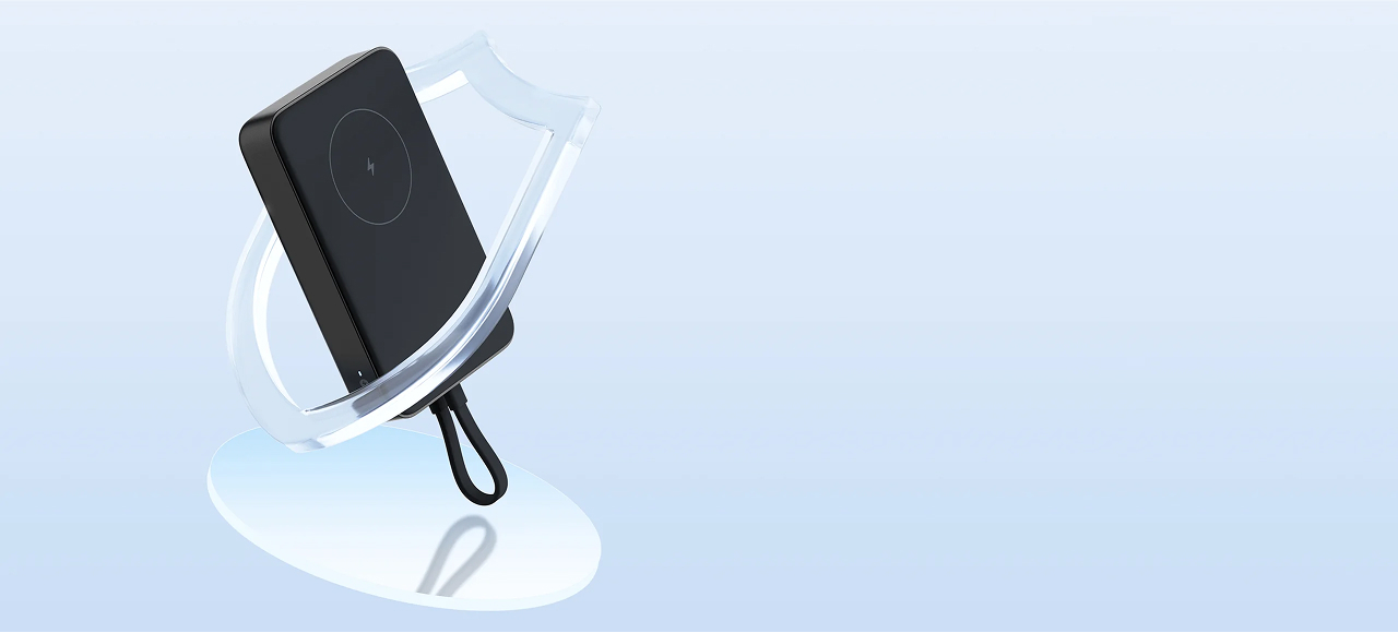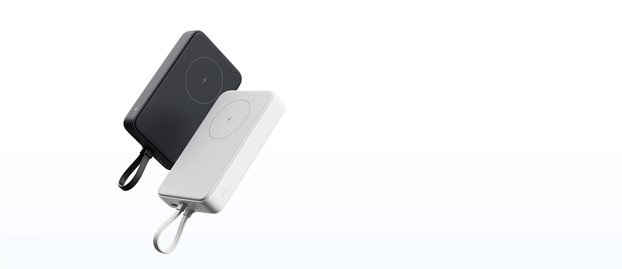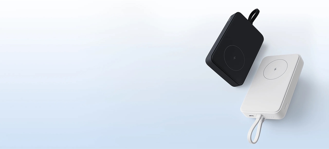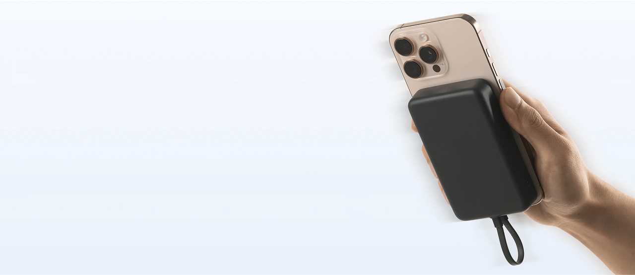 Kompaktowy powerbank z szybkim ładowaniem przewodowym 33 W i natychmiastowym ładowaniem bezprzewodowym po zbliżeniu do smartfona.