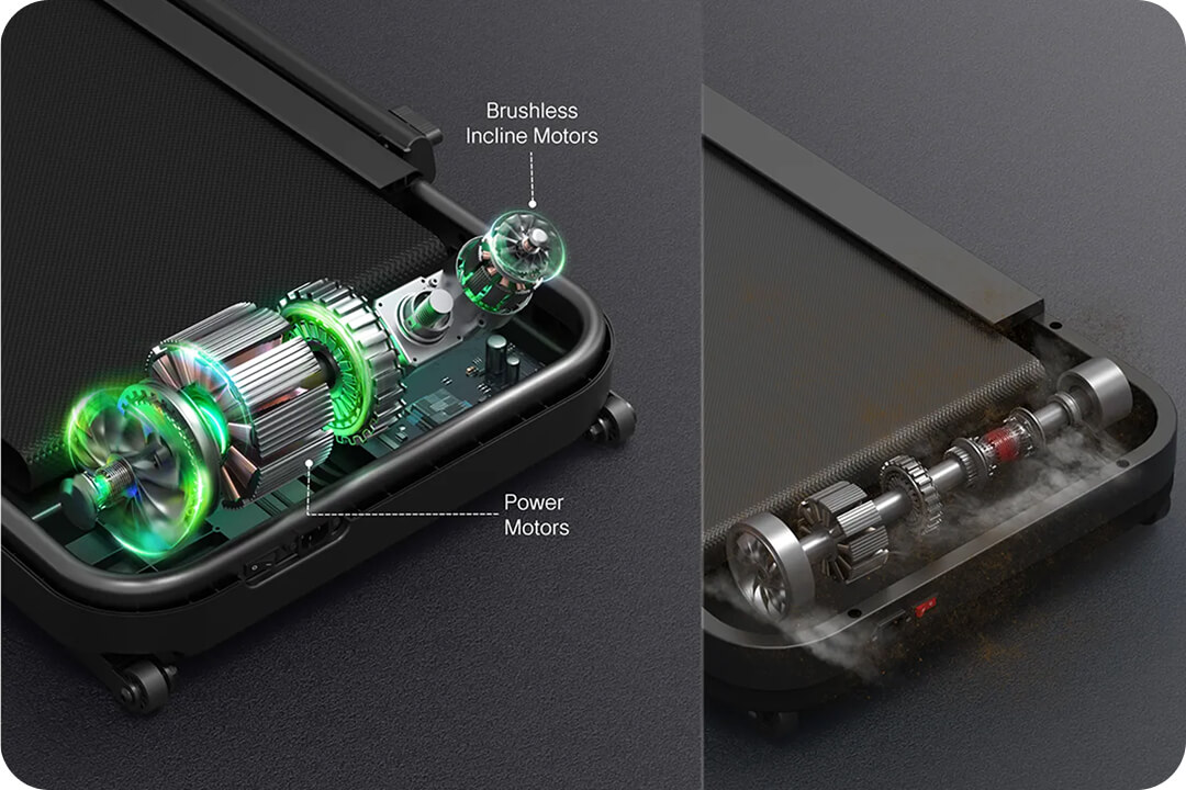 Silnik bieżni pracuje wyjątkowo cicho, poniżej 40 dB, dzięki czemu FoldiMix 5L nie przeszkadza ani w pracy, ani w wideokonferencjach. Możesz prowadzić rozmowy, słuchać muzyki lub skupiać się na zadaniach bez żadnych zakłóceń. Stabilna konstrukcja i odpowiednio amortyzowany bieżnik eliminują drgania i wibracje, co pozwala w pełni skoncentrować się na pracy lub treningu, nie martwiąc się o hałas czy niestabilność.