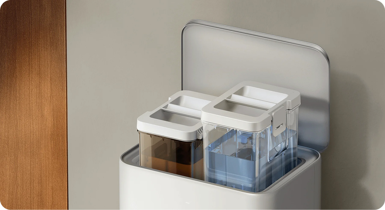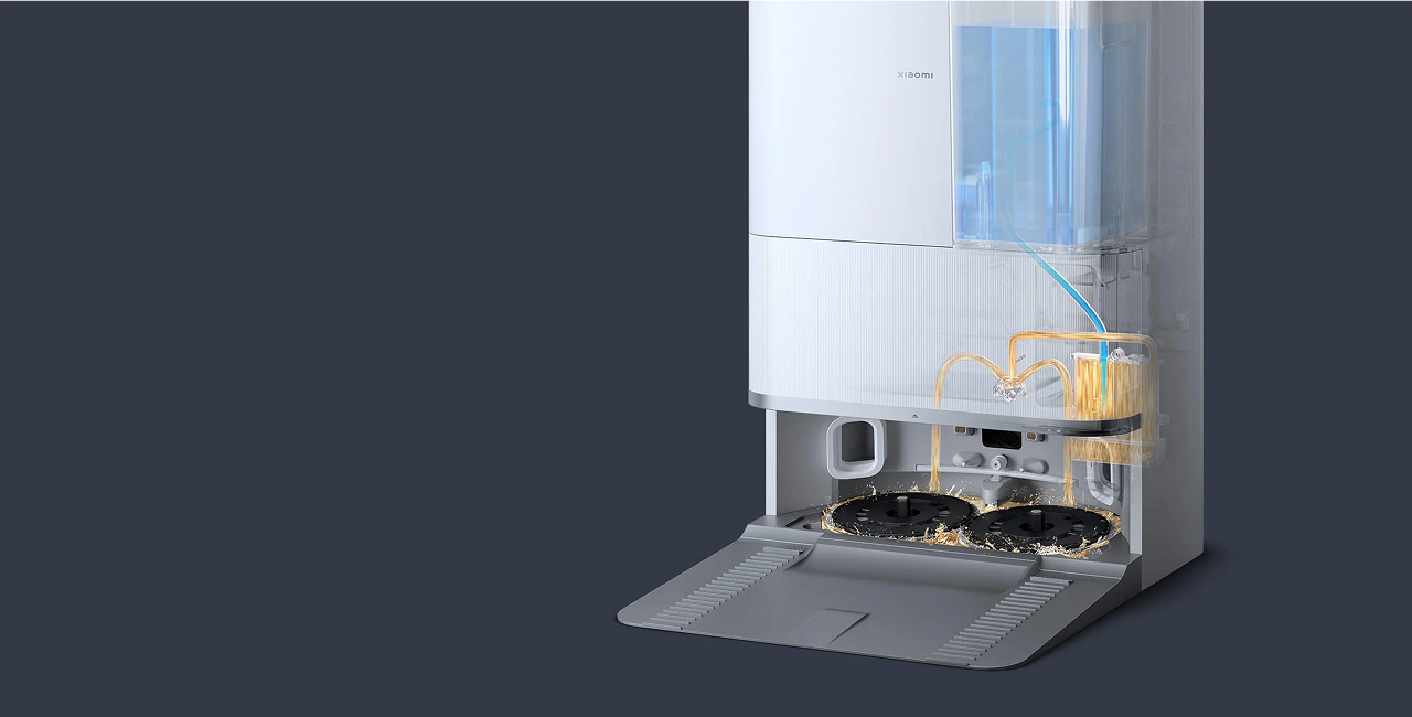 Wysuwana mop i szczotka boczna automatycznie się rozsuwają, umożliwiając precyzyjne usuwanie kurzu przy krawędziach i w narożnikach. W połączeniu z osobnym zbiornikiem na wodę i precyzyjnym sterowaniem jej podawaniem, robot pozostawia podłogi lśniąco czyste.