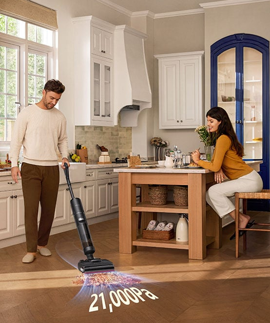 Dreame H15s oferuje siłę ssania 21 000 Pa i konstrukcję Lie-Flat Reach, dzięki której sprzątanie pod meblami jest łatwe. Odkurzacz może pracować pod kątem 180°, docierając pod sofy i łóżka bez utraty mocy. Wielokierunkowe kółka ułatwiają manewrowanie i chronią powierzchnie, zapewniając wygodne i skuteczne czyszczenie trudno dostępnych miejsc.