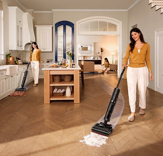Technologia GapFree™ AI DescendReach pozwala inteligentnemu ramieniu w 0,2 sekundy dotrzeć do szczelin i krawędzi. Czujniki wykrywają przeszkody, a system automatycznie dostosowuje ruch, skutecznie usuwając zarówno mokre, jak i suche zabrudzenia. Dreame H15s dociera tam, gdzie tradycyjne odkurzacze zawodzą, zapewniając perfekcyjną czystość w trudno dostępnych miejscach.