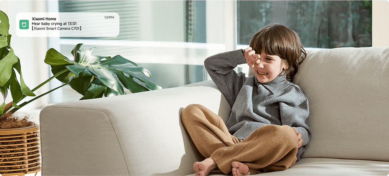 * Funkcje SI, takie jak wykrywanie płaczu dziecka, wykrywanie zwierząt domowych, śledzenie zwierząt domowych, wykrywanie hałasu i rozpoznawanie gestów, są domyślnie wyłączone. Można je włączyć na smartfonie za pomocą aplikacji Xiaomi Home w ustawieniach SI. Na powiadomienia z aplikacji Xiaomi Home może mieć wpływ domyślny interwał wysyłania powiadomień przez asystenta bezpieczeństwa domowego (10 minut). Użytkownicy mogą dostosować ten interwał w ustawieniach asystenta bezpieczeństwa domowego.