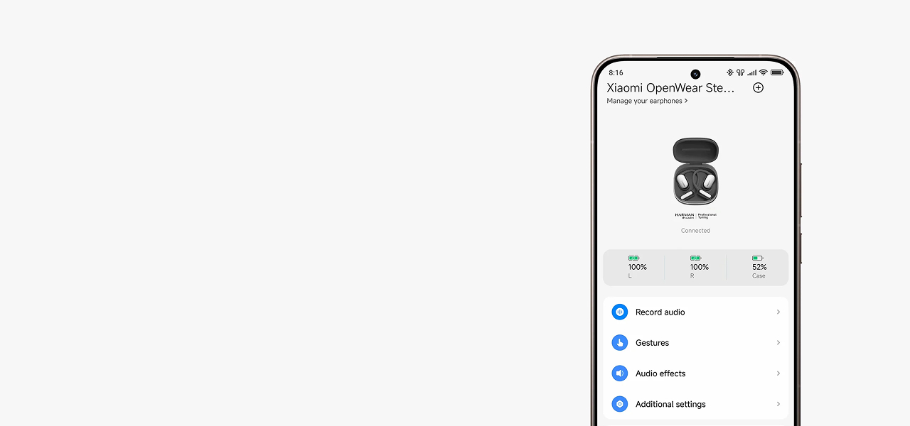 Skorzystaj z aplikacji Xiaomi Earbuds, aby sprawdzać stan słuchawek, lokalizować je i dostosowywać ustawienia dla optymalnych wrażeń słuchowych.