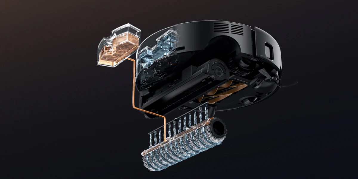 Funkcja HydroForce™ zapewnia stały przepływ czystej wody przez wałek mopujący, jednocześnie usuwając wodę brudną. Dzięki 12 dyszom, 360° skrobakowi i dociskowi 4100 Pa, mop zawsze pracuje czystą wodą, skutecznie usuwając nawet trudne plamy.
