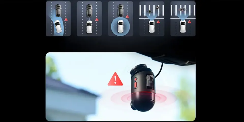 System ADAS (Advanced Driver-Assistance System) monitoruje otoczenie pojazdu i ostrzega kierowcę głosowo o potencjalnych zagrożeniach. Kamera 70mai 4K Omni X800 informuje o sytuacjach takich jak zbyt mała odległość do poprzedzającego auta, niezamierzone zjechanie z pasa, ruch pojazdu z przodu oraz obecność pieszych i rowerzystów.