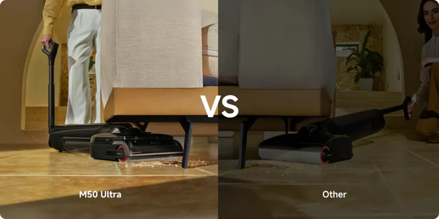 - MOVA M50 Ultra to odkurzacz mokro-suchy ze składanym, wysuwanym uchwytem, mocą ssania 22 000 Pa, inteligentną regulacją mocy, skutecznym grzebieniem do sierści, sprzątaniem „na płasko” i sterowaniem w aplikacji.