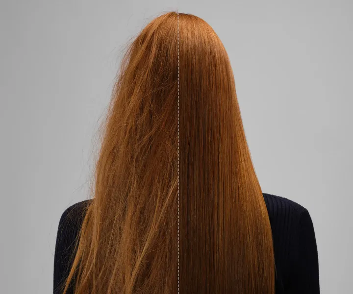 Włosy suche i skłonne do łamania stają się bardziej miękkie, gładkie i zyskują zdrowy połysk.