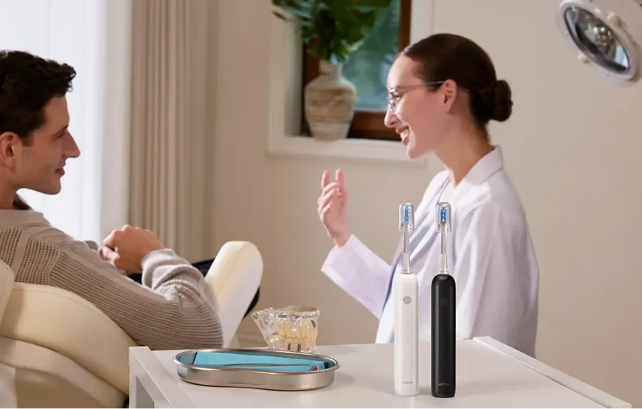 - MOVA Fresh to szczoteczka elektryczna z technologią SweepDrive™ i sonicznymi wibracjami, skutecznie usuwa płytkę nazębną, wybiela zęby, działa do 30 dni i chroni dziąsła dzięki czujnikowi nacisku.