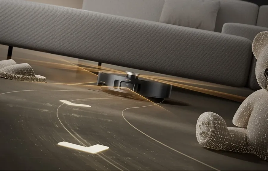Silnik TurboForce8 pracujący z prędkością do 110 000 obrotów na minutę generuje imponującą siłę ssania - aż 26 000 Pa. Dzięki temu robot efektywnie zbiera zarówno drobny pył, jak i większe zanieczyszczenia. Pięć trybów mocy umożliwia dostosowanie pracy do każdej powierzchni, a ulepszony silnik zapewnia jeszcze skuteczniejsze czyszczenie szczelin i dywanów.