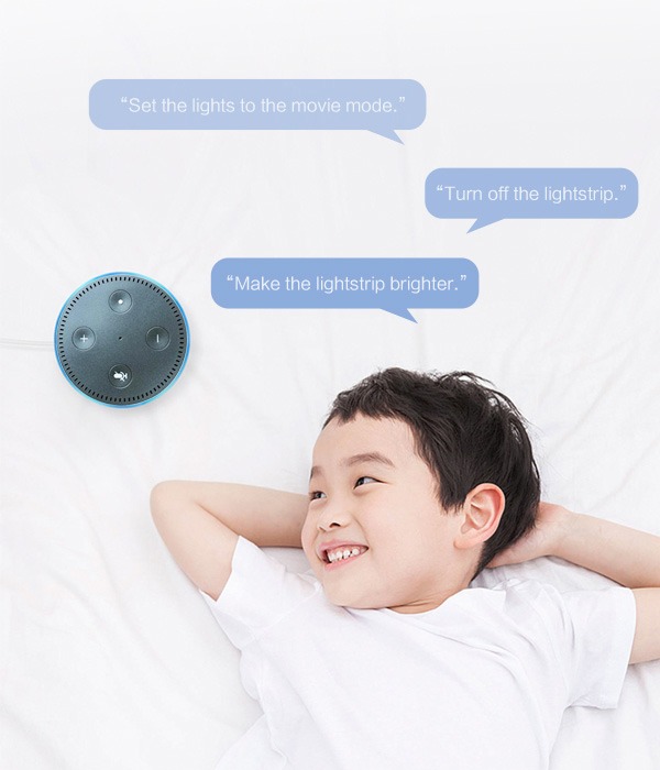 Pasek Yeelight Aurora jest kompatybilny z Google Assistant i Amazon Alexa dla inteligentnego sterowania głosem i obsługuje bezobsługowe sterowanie włącznikiem światła, jasnością, scenami i innymi. Możesz sterować swoim oświetleniem za pomocą głosu, jeszcze szybciej i łatwiej
